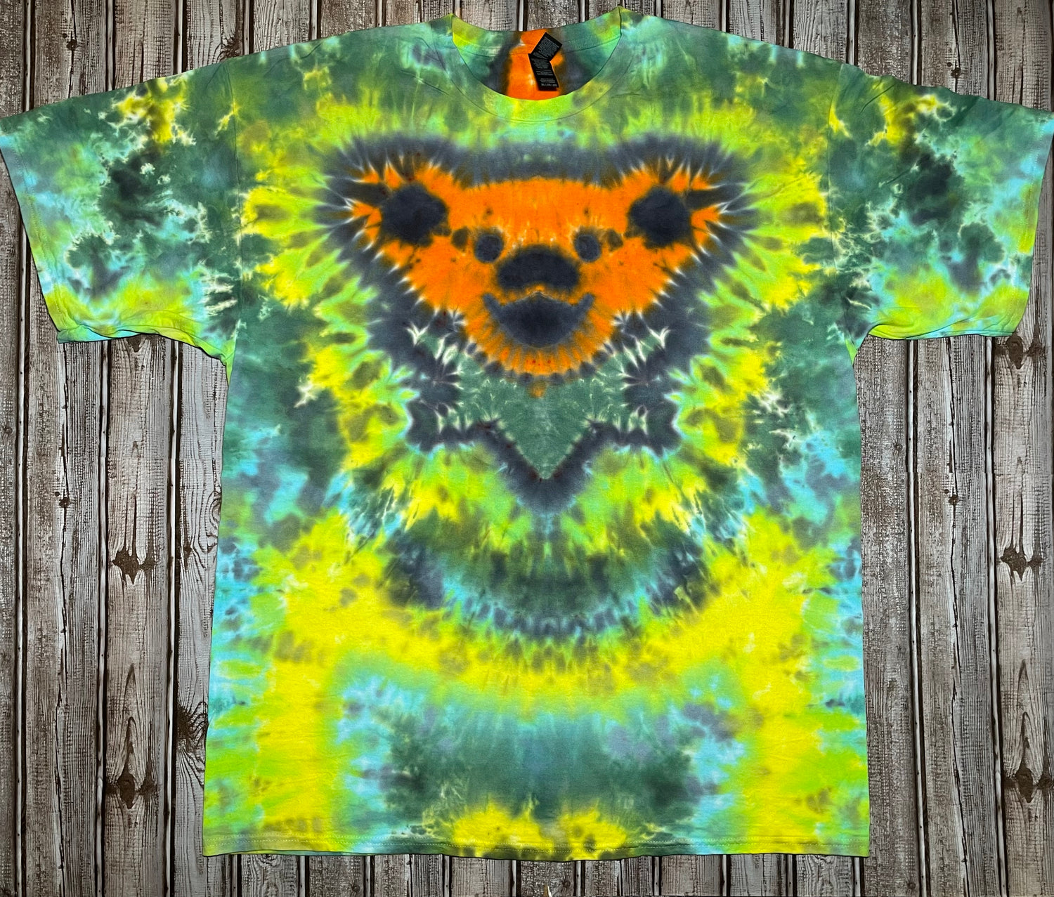 Grateful Dead Bear w/ Hearts Tie Dye T-Shirt Adult LARGE